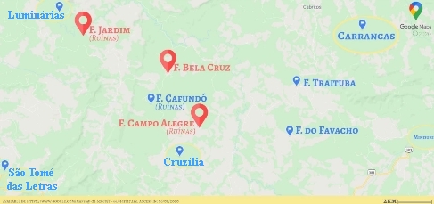 Estas propriedades que hoje integram o município de Cruzília pertenciam à vizinha freguesia de Carrancas na época do levante. As sedes dessas fazendas distam pouco mais de 1,5 légua uma da outra e em todas havia grande quantidade de trabalhadores escravizados.